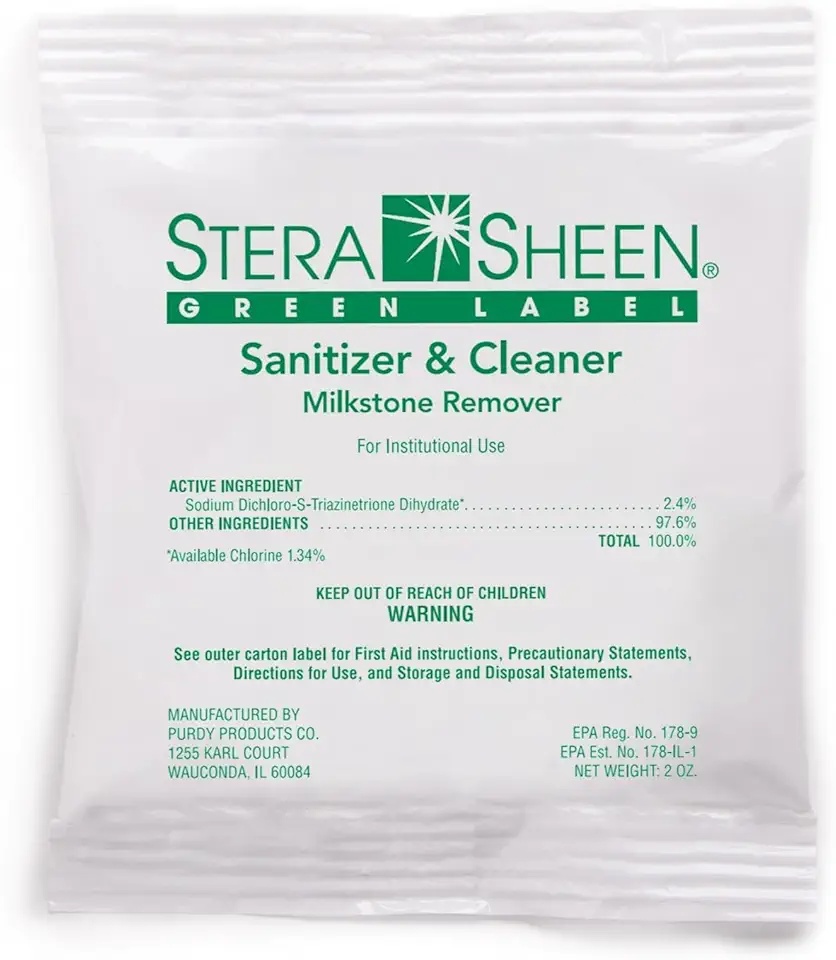 Green Label Sanitizer + Cleaner + Milkstone Remover | Cleaner and Sanitizer By Purdy Products, 100 count, 2 Ounce Sachets
